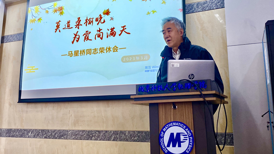 首先王云良代表物理学科全体师生,对马星桥教授多年来为学校、学科做出的卓越贡献表示衷心的感谢!播放了学科精心制作的视频,然后从马星桥老师的学习工作经历、长期的科学研究和教育教学方面取得的成就以及日常工作生活的美好回忆三个方面进行了介绍,特别强调了马老师对与中科院半导体所联合创办“黄昆班”所做出的贡献。